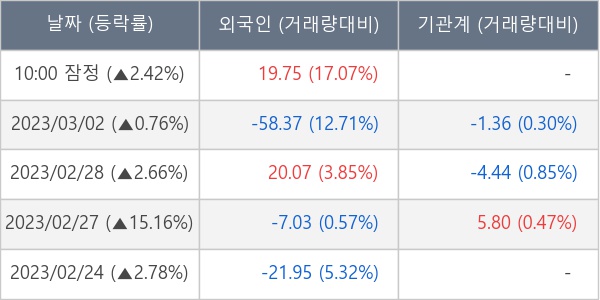 [표] 외국인ㆍ기관 순매매량 (단위 만주)