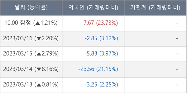 [표] 외국인ㆍ기관 순매매량 (단위 만주)