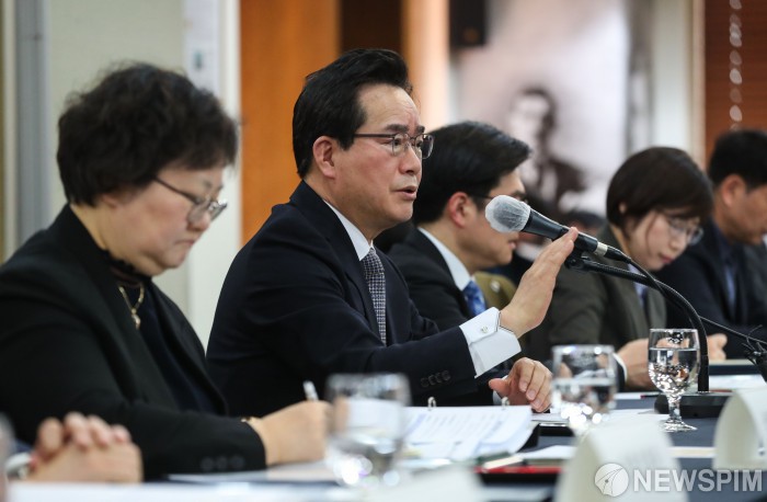 [서울=뉴스핌] 김보나 인턴기자 = 정황근 농림축산식품부 장관이 17일 오전이 서울 중구 한국프레스센터에서 열린 농업단체장과의 소통 간담회에 참석해 발언하고 있다. 2023.03.17 anob24@newspim.com