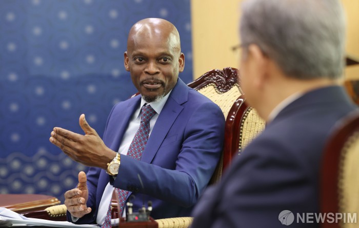 [서울=뉴스핌] 김학선 기자 = 로베르 뒤세이 토고 외교장관이 23일 서울 종로구 외교부 청사에서 열린 한-토고 외교장관회담에서 발언하고 있다. 2023.03.23 yooksa@newspim.com