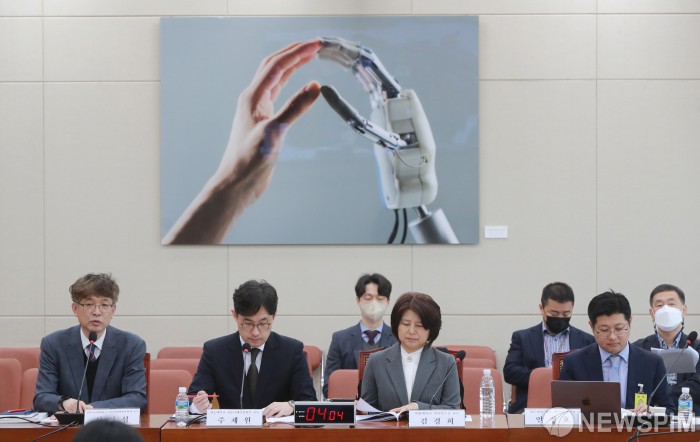 [서울=뉴스핌] 이형석 기자 = 심영섭 경희사이버대 미디어영상홍보학과 교수(왼쪽)가 28일 오전 서울 여의도 국회에서 열린 과학기술정보방송통신위원회의 방송 관련 법안 제정에 대한 공청회에서 발언을 하고 있다. 2023.03.28 leehs@newspim.com