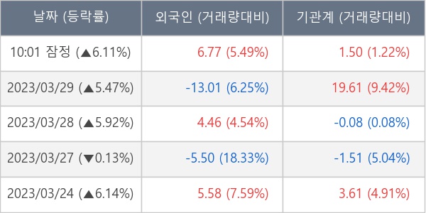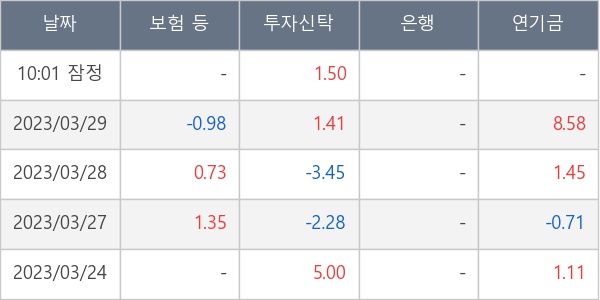 [표] 주요 기관별 순매매량 (단위 만주)