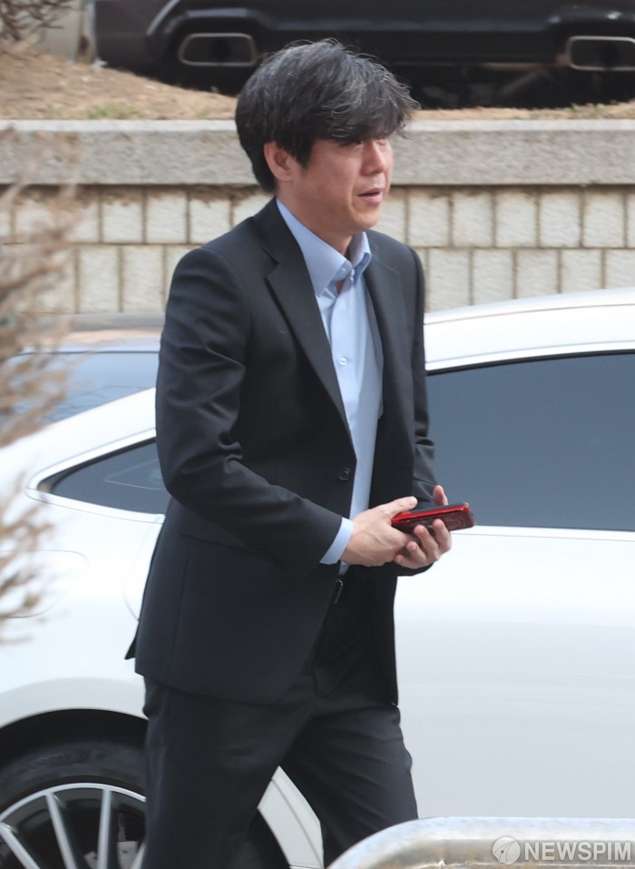 [서울=뉴스핌] 황준선 기자 = 남욱 변호사가 31일 오전 서울 서초구 서울중앙지방법원에서 열린 대장동 개발 로비·특혜 의혹 공판에 출석하고 있다. 2023.03.31 hwang@newspim.com