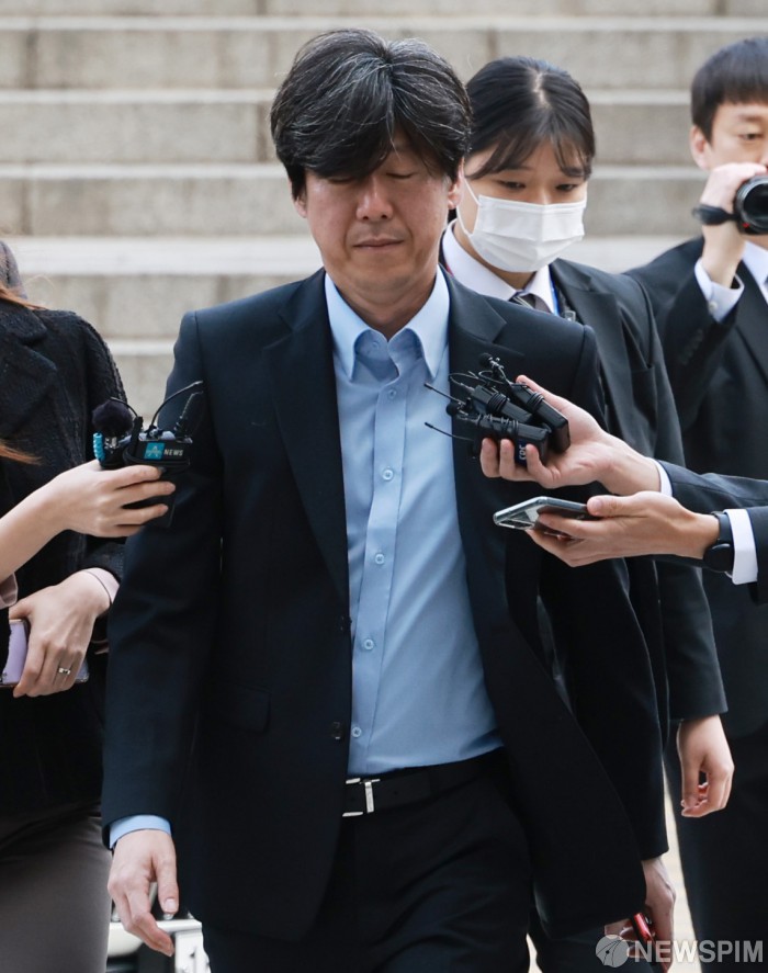 [서울=뉴스핌] 황준선 기자 = 남욱 변호사가 31일 오전 서울 서초구 서울중앙지방법원에서 열린 대장동 개발 로비·특혜 의혹 공판에 출석하고 있다. 2023.03.31 hwang@newspim.com