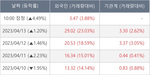 [표] 외국인ㆍ기관 순매매량 (단위 만주)