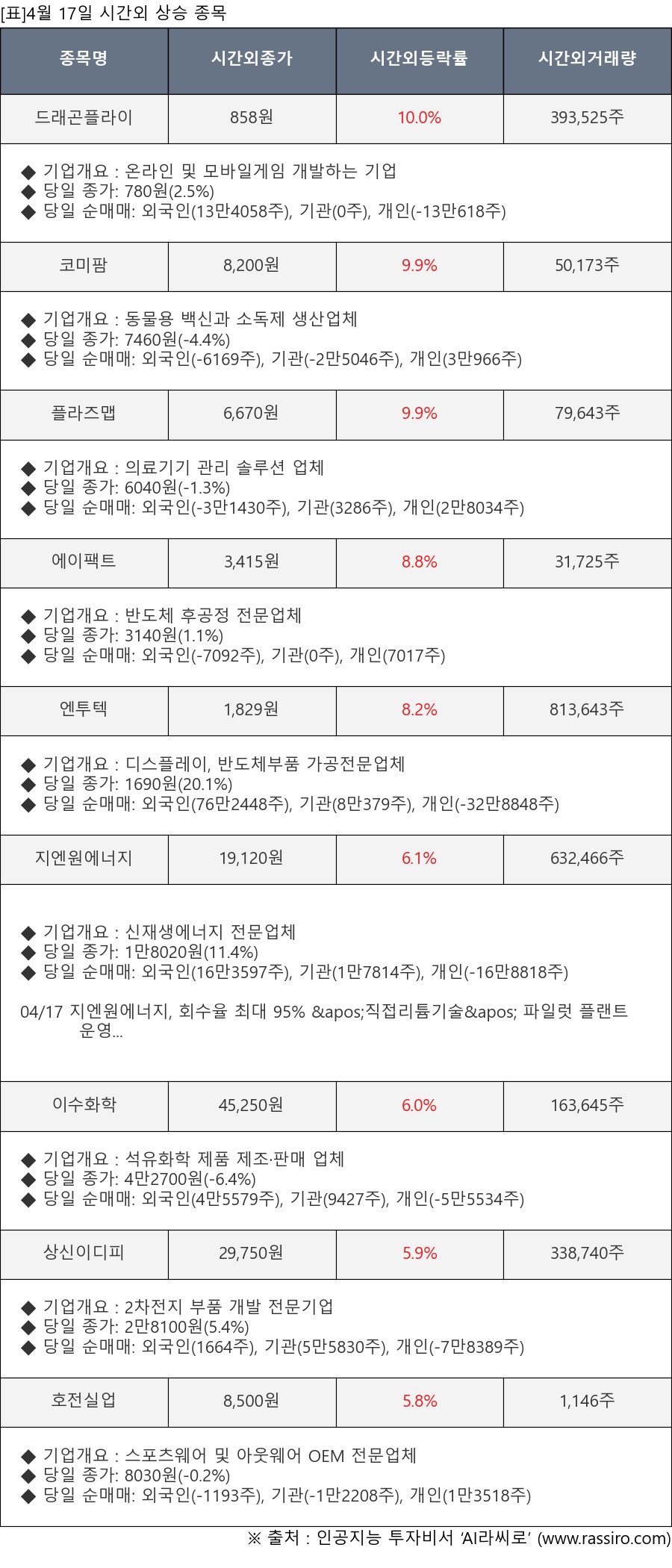 ※ 관련 종목: 드래곤플라이, 코미팜, 플라즈맵, 에이팩트, 엔투텍, 지엔원에너지, 이수화학, 상신이디피, 호전실업