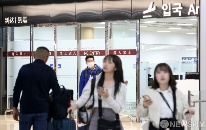 [서울=뉴스핌] 정일구 기자 = 일본 입국 시 코로나19 음성 증명서나 백신 접종 증명서 제출 의무가 해제된 29일 오후 서울 강서구 김포국제공항 입국장 모습. 일본 정부는 다음 달 8일부터 코로나19를 계절성 인플루엔자(독감)처럼 관리하고 관련 방역 조치를 해제한다. 2023.04.29 mironj19@newspim.com
