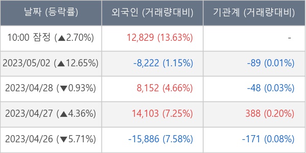 [표] 외국인ㆍ기관 순매매량 (단위 주)