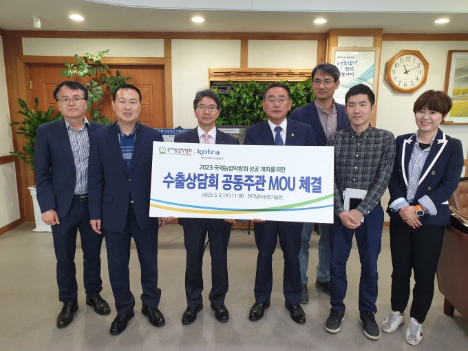 [무안=뉴스핌] 조은정 기자 = 전남도국제농업박람회 사무국은 국제농업박람회 수출 성과 창출을 위해 대한무역투자진흥공사(KOTRA)와 '2023 국제농업박람회 해외바이어 수출상담회'개최 업무협약을 했다고 5일 밝혔다.