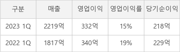 ◆ 1Q, 매출 2219억 전년동기 대비 22% 증가... 영업이익률 상승전환