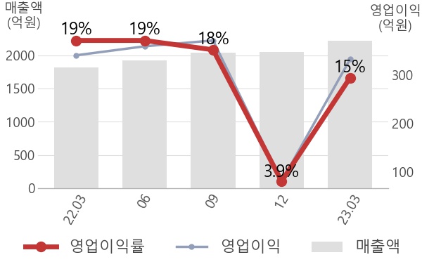 [서울=뉴스핌] 로보뉴스 = 하락하던 원익QnC의 영업이익률이 2분기만에 상승세로 돌아왔다. 22년 06월 19%이던 영업이익률은 지속적으로 하락하여 22년 12월 3.9%까지 떨어졌지만 이번 분기에 15%로 상승하면서 개선된 모습을 보이고 있다.