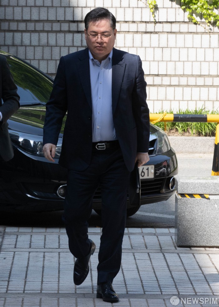 [서울=뉴스핌] 윤창빈 기자 = 유동규 전 성남도시개발공사 기획본부장이 15일 오전 서울 서초구 서울중앙지방법원에서 열린 대장동 개발 사업 로비·특혜 의혹 관련 속행 공판에 출석하고 있다. 2023.05.15 pangbin@newspim.com