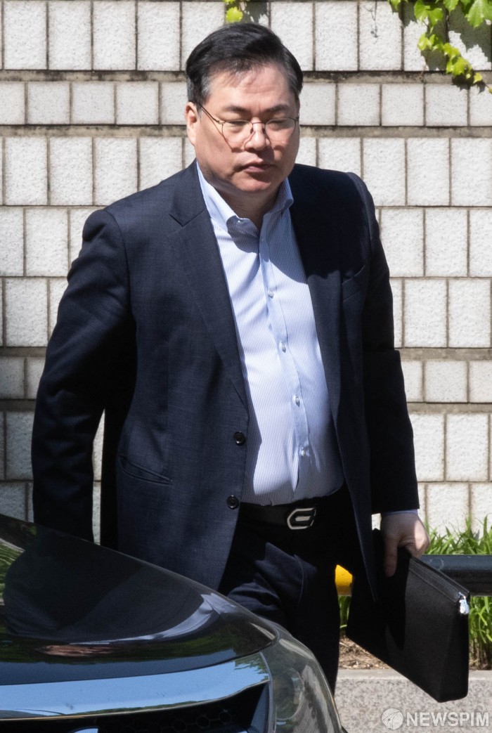 [서울=뉴스핌] 윤창빈 기자 = 유동규 전 성남도시개발공사 기획본부장이 15일 오전 서울 서초구 서울중앙지방법원에서 열린 대장동 개발 사업 로비·특혜 의혹 관련 속행 공판에 출석하고 있다. 2023.05.15 pangbin@newspim.com