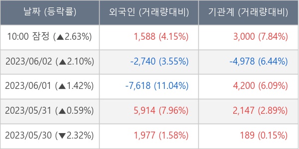 [표] 주요 기관별 순매매량 (단위 주)