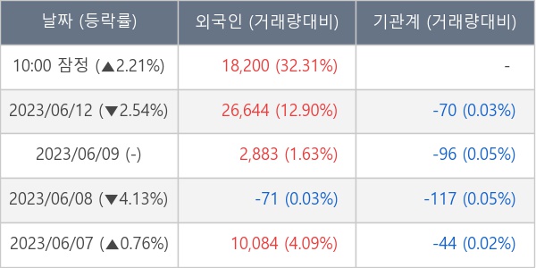 [표] 외국인ㆍ기관 순매매량 (단위 주)