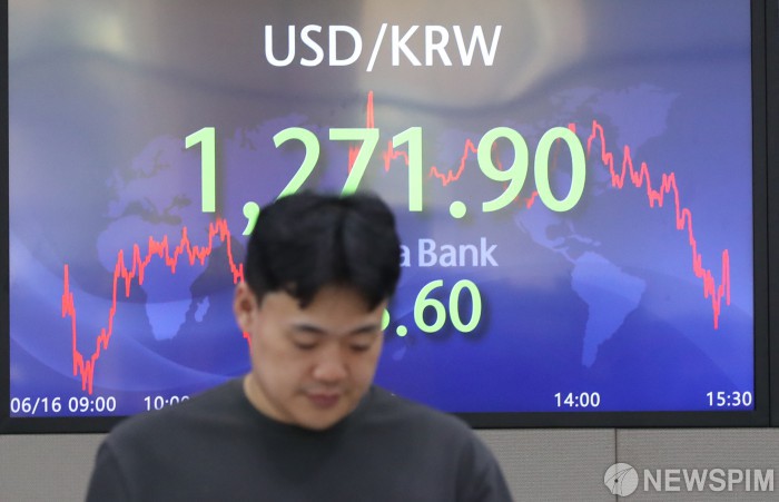 [서울=뉴스핌] 최지환 인턴기자 = 16일 코스피 지수가 전 거래일보다 17.25포인트(0.66%) 상승한 2625.79에 마감했다. 코스닥 지수는 전날 대비 9.91포인트(1.13%) 상승한 887.95을 기록했다. 원·달러 환율은 전 거래일보다 8.6원 내린 1271.9원에 장을 마쳤다. 이날 오후 서울 중구 하나은행 딜링룸에서 딜러들이 업무를 보고 있다. 2023.06.16 choipix16@newspim.com