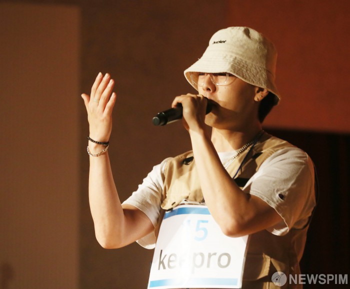 [수원=뉴스핌] 이호형 기자 = 7일 오후 수원 경기문화재단 다산홀에서 열린 국내 최대 유튜브 오디션 '싱어 송 라이터 오디션-음악의 탄생' 네번째 예선 경기지역 대회에서 참가번호 15번 keepro (홍기표)가 '방황‘ 곡명으로 경연을 펼치고 있다. 종합통신사 뉴스핌이 주최하고 감 엔터테인먼트에서 주관하는 '싱어 송 라이터 오디션-음악의 탄생'은 유튜브 안다(ANDA)TV를 통해 공개된다. 2023.07.07. leemario@newspim.com