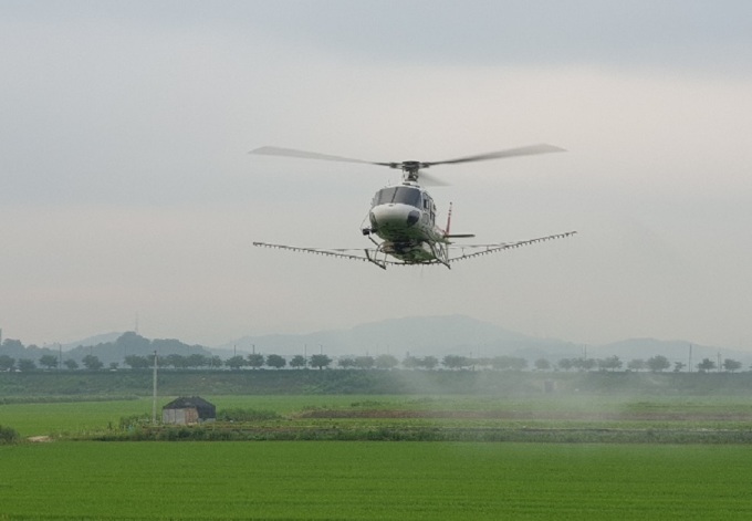 | 벼 병해충 항공방제 모습. [사진=시흥시] |