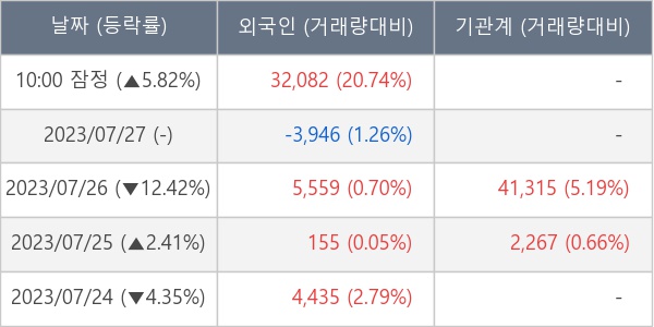 [표] 외국인ㆍ기관 순매매량 (단위 주)