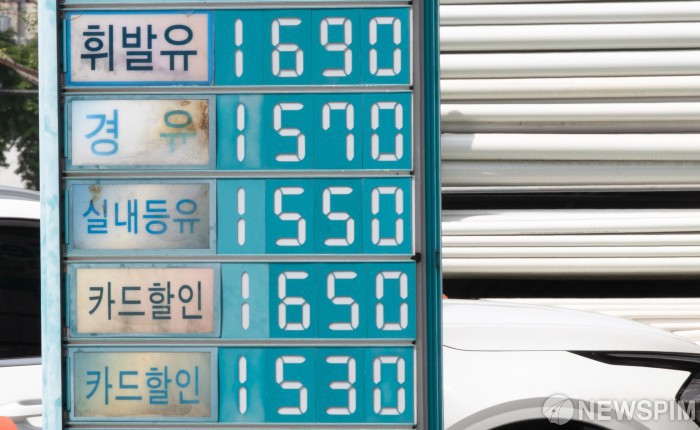 [서울=뉴스핌] 윤창빈 기자 = 30일 서울의 한 주유소에 휘발유 가격이 표시되고 있다. 한국석유공사 유가정보시스템 오피넷에 따르면 7월 넷째 주(23∼27일) 전국 주유소 휘발유 평균 판매 가격은 리터당 1,599.3원, 경유 판매 가격은 1,411.8원으로 3주 연속 상승을 기록했다. 2023.07.30 pangbin@newspim.com