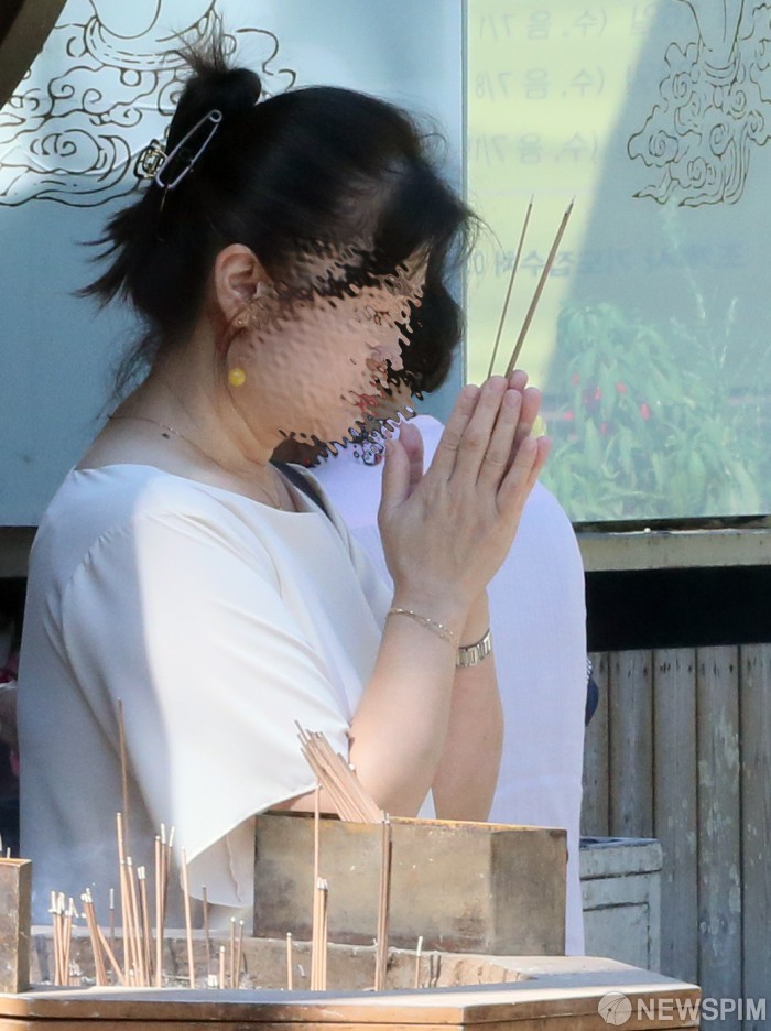 [서울=뉴스핌] 양윤모 기자 = 2024학년도 대학수학능력시험(수능)이 100일 앞으로 다가온 8일 전국 대부분 지역의 체감온도가 35도 이상으로 올라 찜통더위가 이어지는 가운데, 서울 종로구 조계사를 찾은 신도들이 수능 고득점과 건강을 기원하고 있다. 2024학년도 수능은 오는 11월 16일 실시되며 49만여 명이 응시하는 가운데 졸업생(검정고시생 포함)은 34.1%인 16만7000명,고3 재학생은 32만4000명(65.9%)으로 나타났다. 2023.08.08 yym58@newspim.com