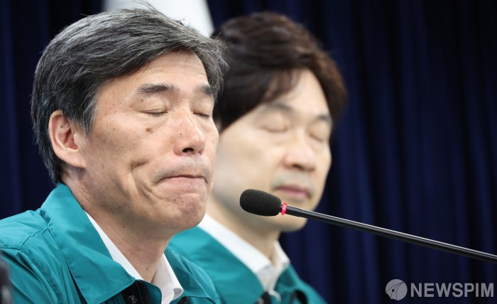 [서울=뉴스핌] 김학선 기자 = 박구연 국무조정실 국무1차장과 박성훈 해양수산부 차관이 21일 정부서울청사에서 열린 후쿠시마 원전 오염수 방류 관련 일일브리핑에서 오염수 방류 시기와 관련한 질문을 받고 있다. 2023.08.21 yooksa@newspim.com