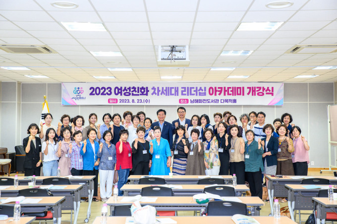 [남해=뉴스핌] 최민두 기자 = 경남 남해군은 지난 23일 화전도서관 다목적홀에서 '여성친화 차세대 리더십 아카데미' 개강식을 개최했다고 24일 밝혔다.