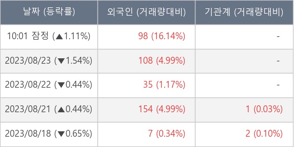 [표] 외국인ㆍ기관 순매매량 (단위 주)