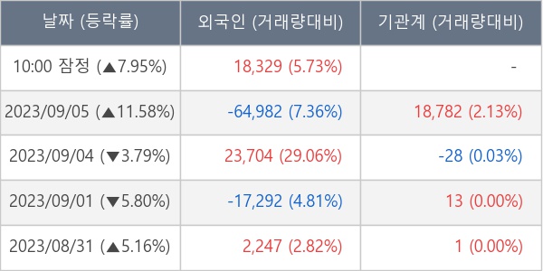 [표] 외국인ㆍ기관 순매매량 (단위 주)
