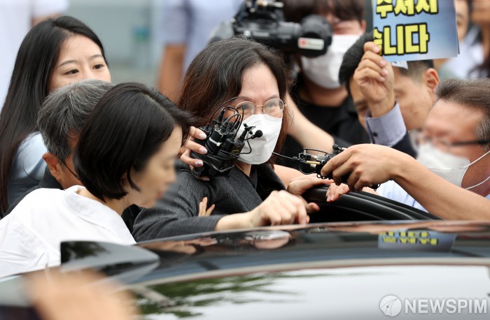 [의왕=뉴스핌] 정일구 기자 = 자녀 입시 비리 혐의로 징역형을 확정받고 복역해온 정경심 전 동양대 교수가 27일 오전 경기 의왕시 서울구치소에서 가석방으로 출소하고 있다. 2023.09.27 mironj19@newspim.com