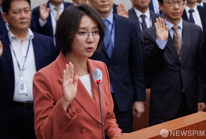 [서울=뉴스핌] 윤창빈 기자 = 이영 중소벤처기업부 장관이 12일 오전 서울 여의도 국회에서 열린 산업통상자원중소벤처기업위원회 국정감사에서 증인선서를 하고 있다. 2023.10.12 pangbin@newspim.com