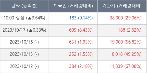 [표] 주요 기관별 순매매량 (단위 주)