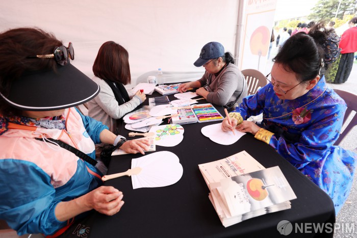[서울=뉴스핌] 정일구 기자 = 27일 오후 서울 영등포구 여의도공원에서 열린 2023 실버문화페스티벌에서 참가자들이 부스에서 다양한 체험활동을 하고 있다. 2023.10.27 mironj19@newspim.com