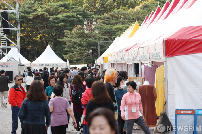 [서울=뉴스핌] 정일구 기자 = 27일 오후 서울 영등포구 여의도공원에서 열린 2023 실버문화페스티벌에서 참가자들이 부스를 둘러보고 있다. 2023.10.27 mironj19@newspim.com