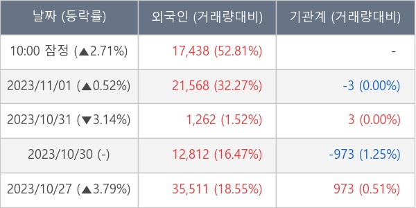 [표] 외국인ㆍ기관 순매매량 (단위 주)