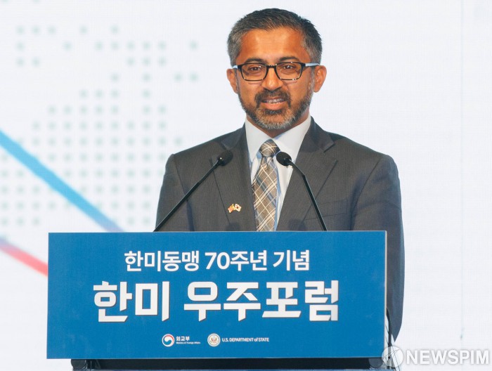 [서울=뉴스핌] 윤창빈 기자 = 시라그 피라크 미국 국가우주위원회 사무총장이 6일 오전 서울 용산구 그랜드하얏트호텔에서 열린 한-미 우주포럼 개회식에서 축사를 하고 있다. 2023.11.06 pangbin@newspim.com