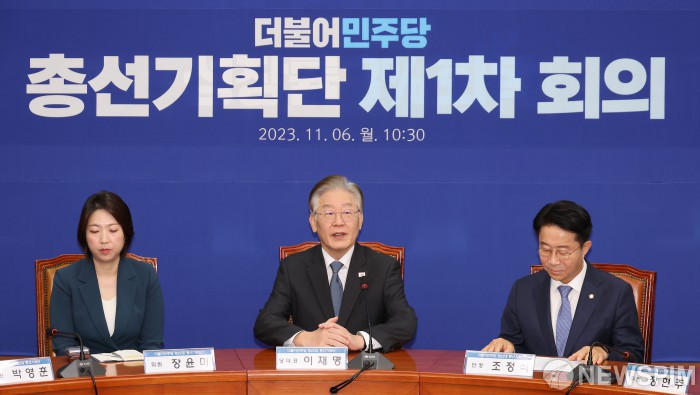 [서울=뉴스핌] 이형석 기자 = 이재명 더불어민주당 대표가 6일 오전 서울 여의도 국회에서 열린 총선기획단 1차 회의에서 모두발언을 하고 있다. 2023.11.06 leehs@newspim.com