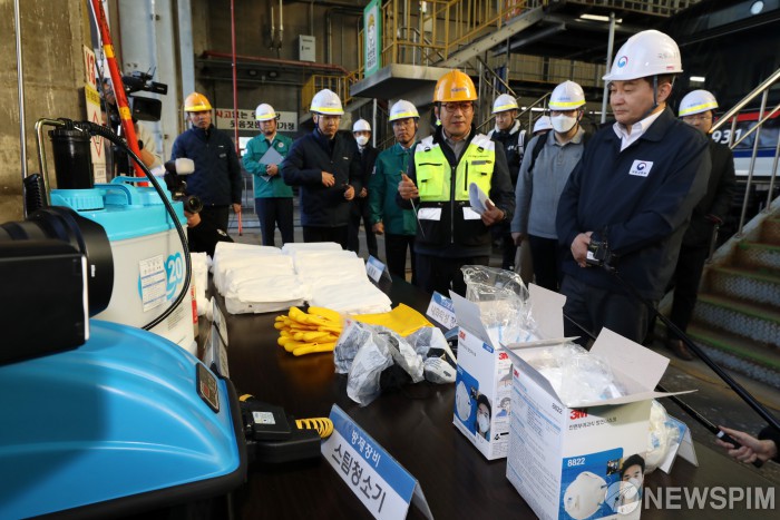 [서울=뉴스핌] 정일구 기자 = 원희룡 국토교통부 장관이 14일 오후 서울 구로구 코레일 수도권철도차량정비단 구로차량사업소를 찾아 빈대 확산 방지를 위한 철도시설 방제 현장점검을 하고 있다. 2023.11.14 mironj19@newspim.com