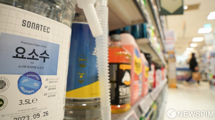 [서울=뉴스핌] 최지환 기자 = 중국 당국이 한국으로 보내는 요소 수출을 제한하고 있는 5일 오후 서울의 한 대형마트에 요소수가 진열돼 있다. 2023.12.05 choipix16@newspim.com
