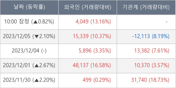 [표] 외국인ㆍ기관 순매매량 (단위 주)