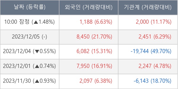 ※ 사모펀드 등 일부 기관의 순매매량은 표시되지 않음