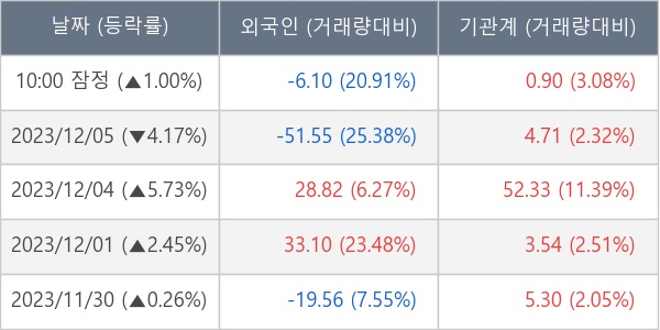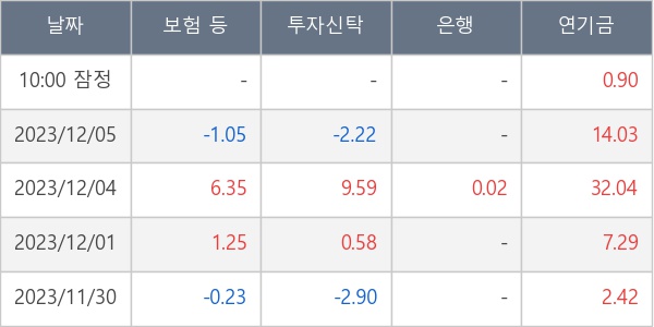 [표] 주요 기관별 순매매량 (단위 만주)