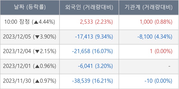 ※ 사모펀드 등 일부 기관의 순매매량은 표시되지 않음