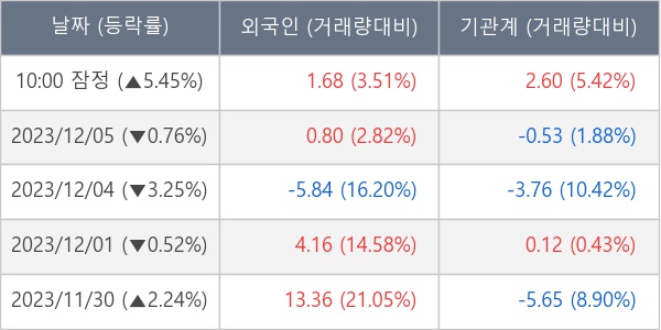 ※ 사모펀드 등 일부 기관의 순매매량은 표시되지 않음