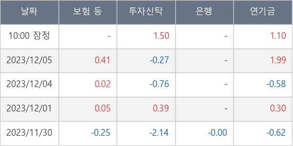 ※ 장중 매매동향은 잠정치이므로 실제 매매동향과 차이가 발생할수 있음