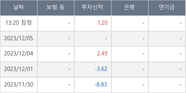 ※ 사모펀드 등 일부 기관의 순매매량은 표시되지 않음