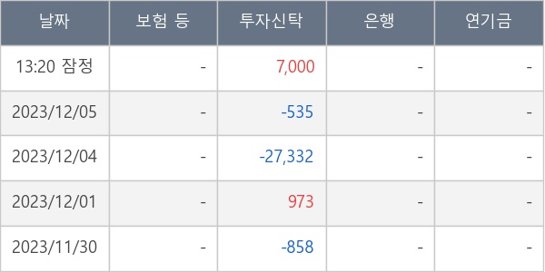 ※ 장중 매매동향은 잠정치이므로 실제 매매동향과 차이가 발생할수 있음
