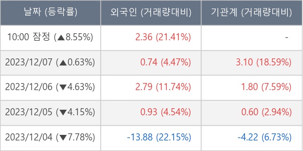 [표] 외국인ㆍ기관 순매매량 (단위 만주)