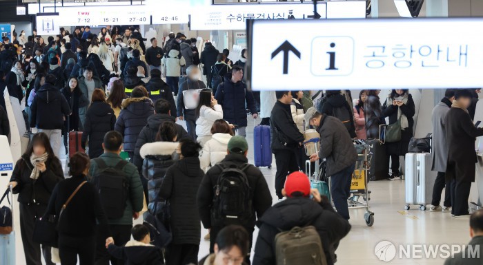 [서울=뉴스핌] 김학선 기자 = 크리스마스 연휴인 23일 서울 강서구 김포공항 국내선 청사 출국층이 여행객 등으로 붐비고 있다. 2023.12.23 yooksa@newspim.com