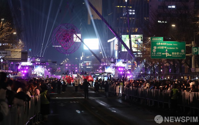 [서울=뉴스핌] 최지환 기자 = 2023년 마지막 날인 31일 오후 서울 종로구 세종대로에서 시민들이 '2023 제야의 종·새해맞이 카운트다운'을 관람하기 위해 모여있다. 2024.01.01 choipix16@newspim.com